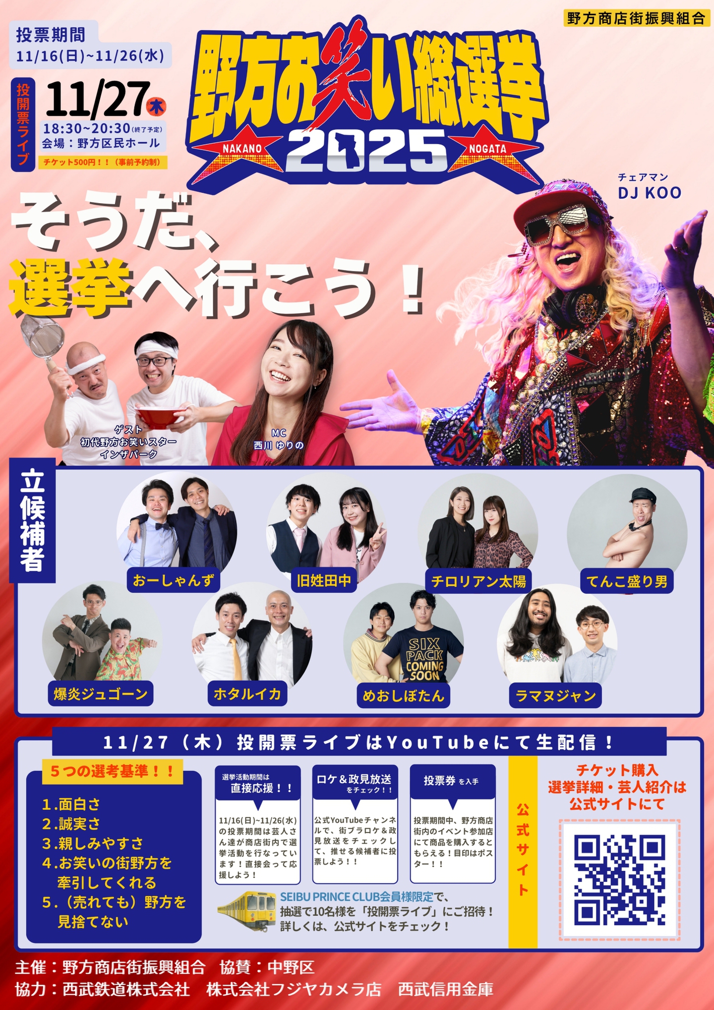 厳正なる選挙の結果「初代野方お笑いスター」は