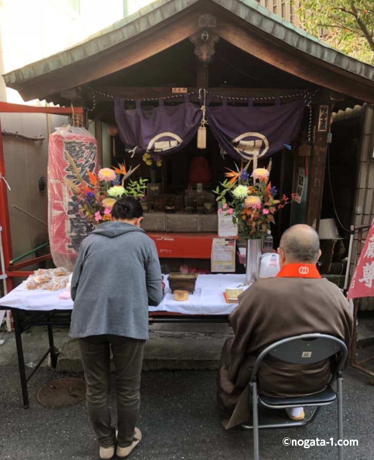 野方本町通りとみつわ通りの間に、通称「野方笑い地蔵尊」という小さな祠(ほこら)があります。戦後の野方地域の人々が笑って明るく生活する事と街の発展を祈願して、小さなお地蔵様を祀り上げ、野方のシンボルとして、昭和の末まで毎月御縁日の6日に特売日を設けて、商店街の賑わいの要因ともなっていました。現在でも街の篤志で保存会を設けて、毎年10月26日に御供養祭を実施しています。